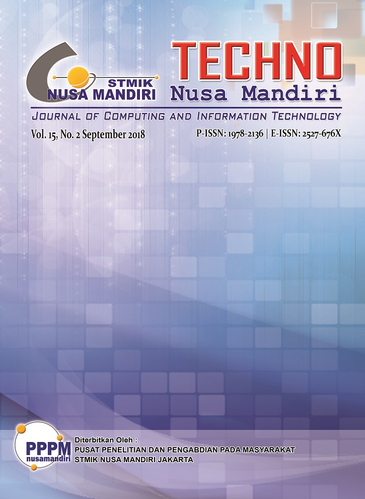 Techno Nusa Mandiri : Journal of Computing and Information Technology Periode September 2018