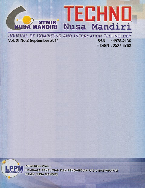 Techno Nusa Mandiri : Journal of Computing and Information Technology Periode September 2014