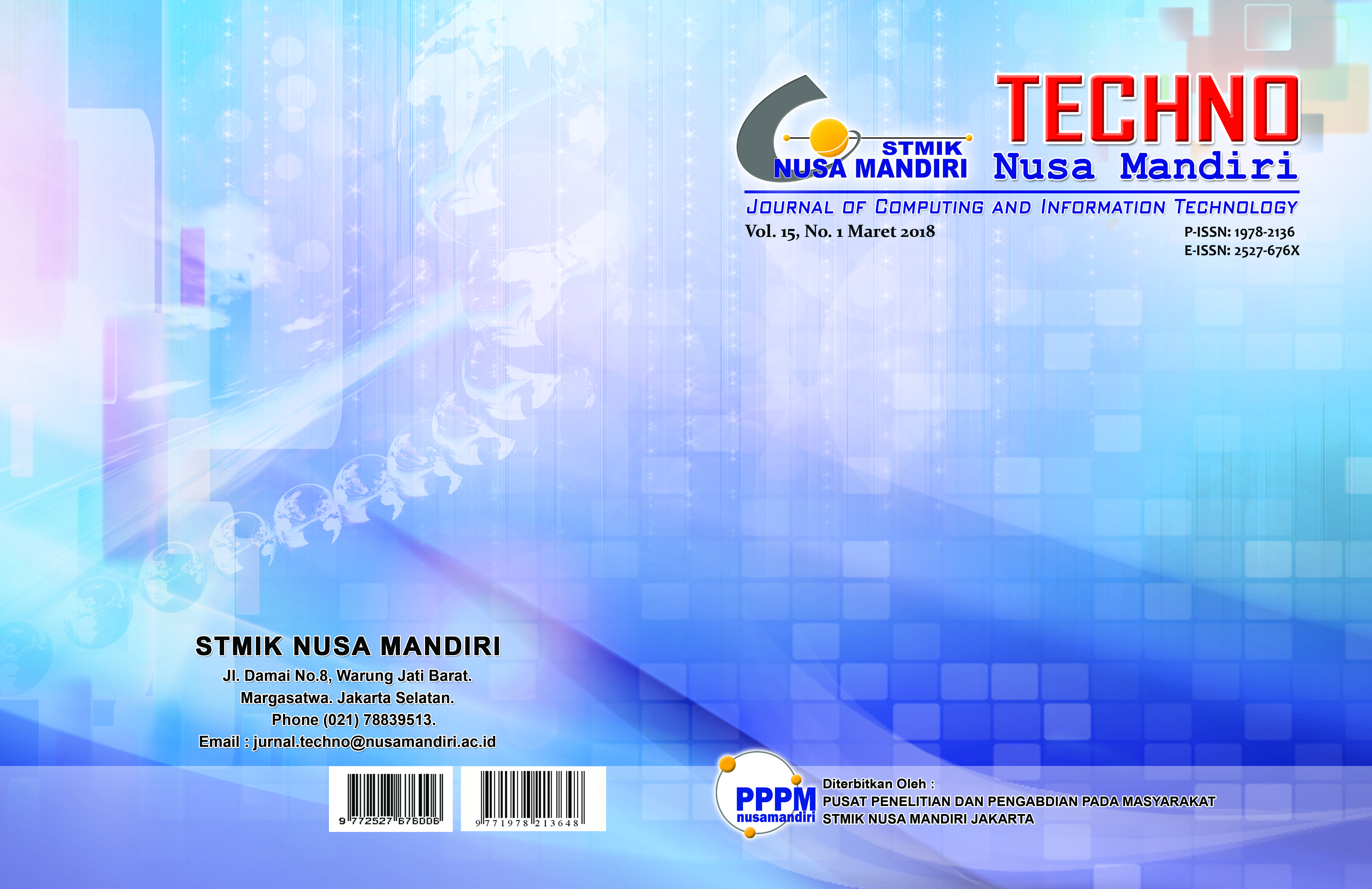 Vol. 15 No. 1 (2018): Techno Nusa Mandiri : Journal of Computing and Information Technology Periode Maret 2018