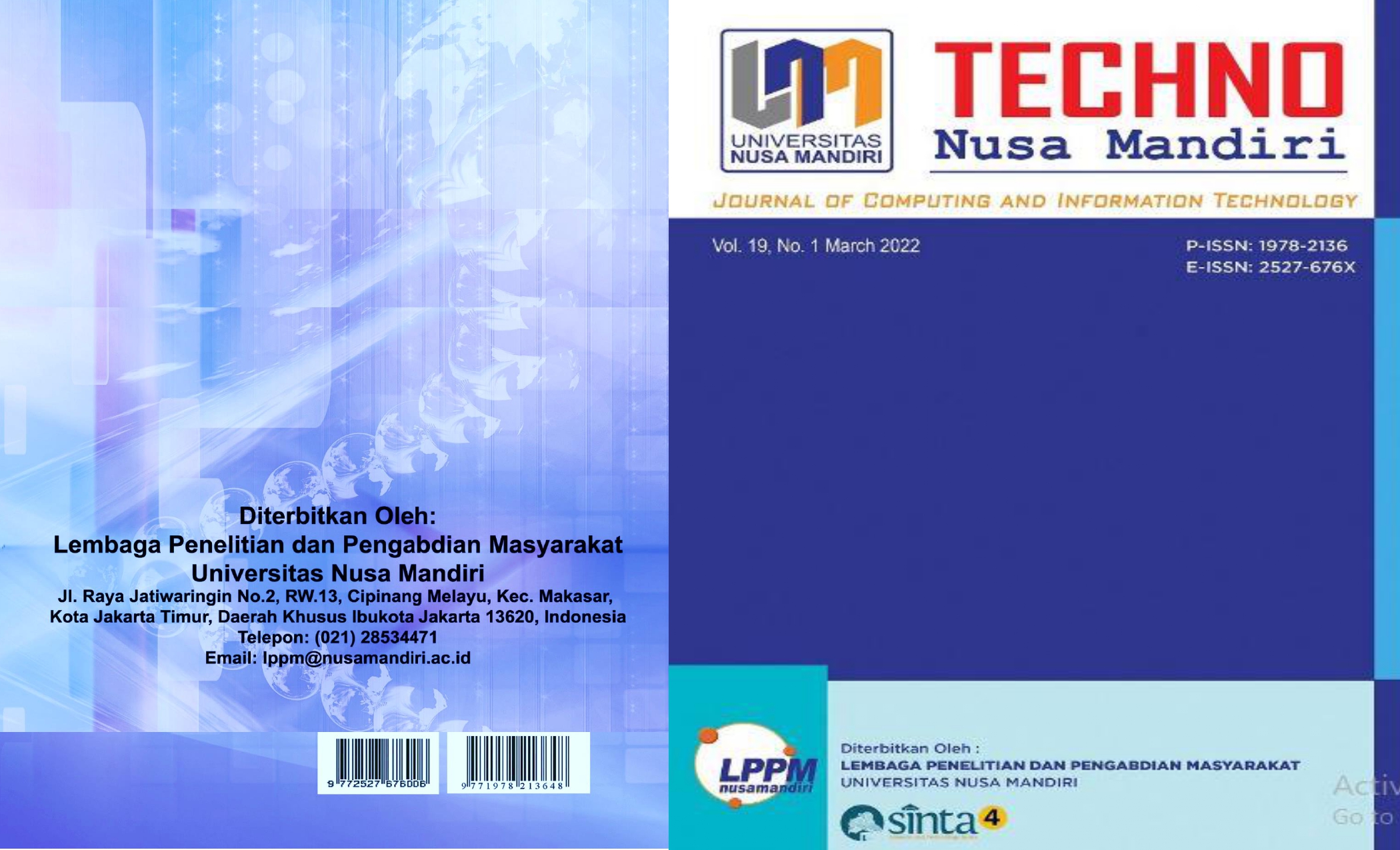 Vol. 19 No. 1 (2022): Techno Nusa Mandiri : Journal of Computing and Information Technology Period of March 2022